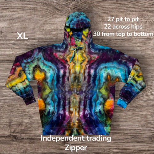 Large zipper hooded sweatshirt, geode tie dye
