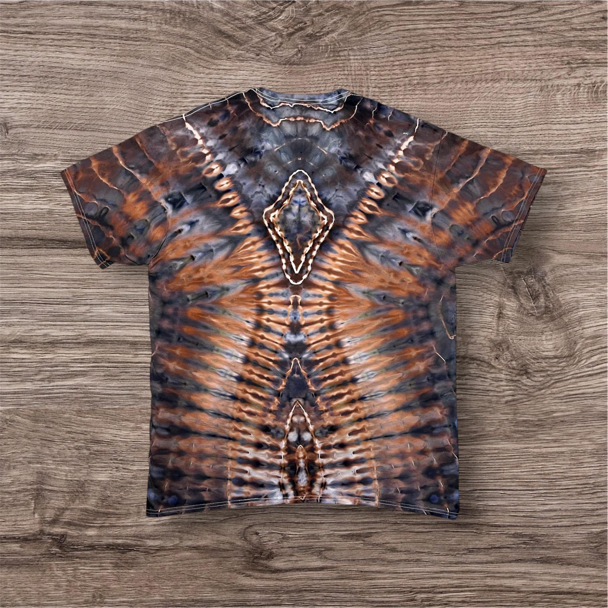 Hand tied, then hand ice dyed design on a soft style Fruit of the Loom Tshirt. This one measures 25 pit to pit and 34 inches from top to bottom.