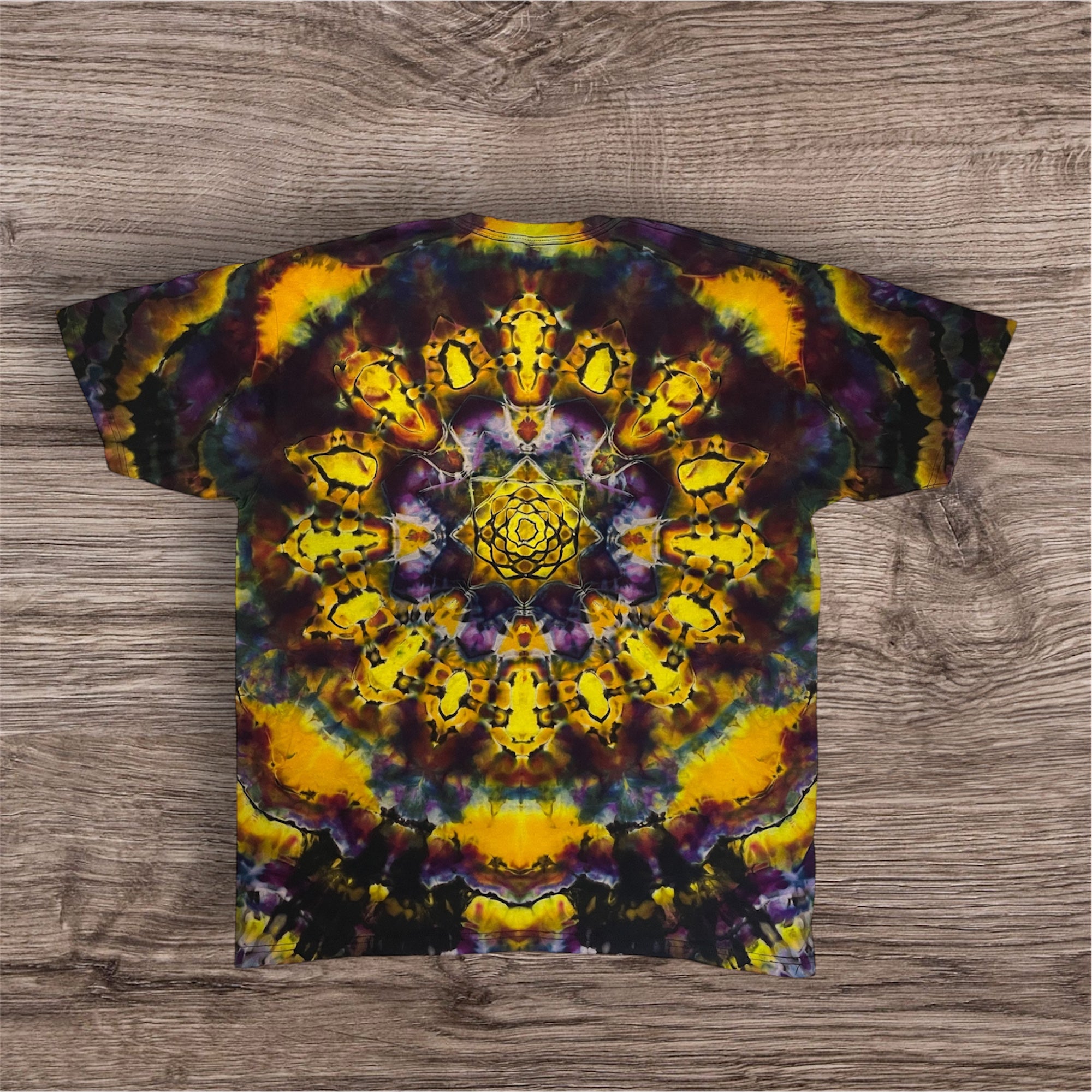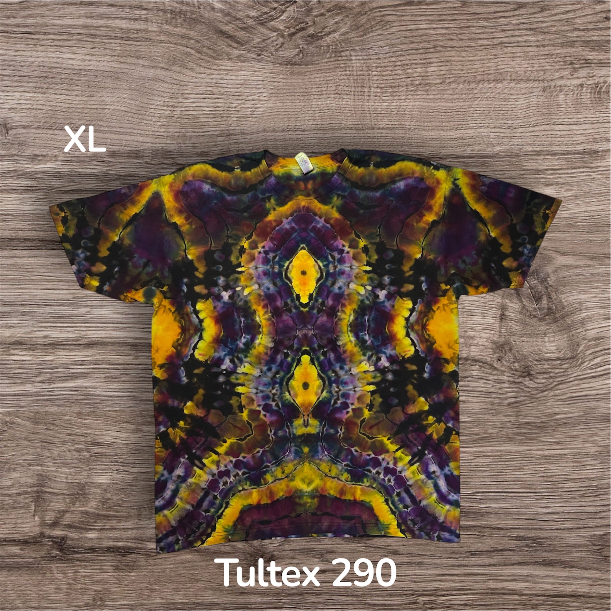 Hand tied, reverse dyed and then hand ice dyed design on a Unisex, 100% cotton, Tultex 290 Tshirt. This one measures 25 inches pit to pit and 32 inches from top to bottom