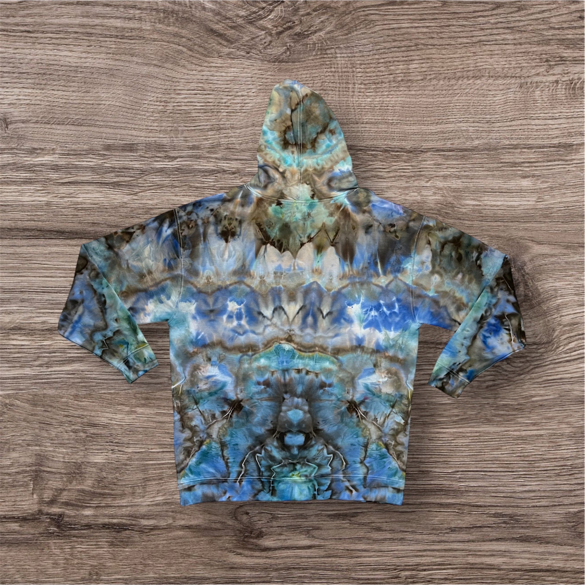Hand tied and hand ice dyed mandala design on a unisex Independent trading pullover hooded sweatshirt. These sweatshirts are 80/20 cotton/poly. This one measures 27 inches pit to pit, 23 inches at the hips and 33 inches from top of shoulder to bottom.