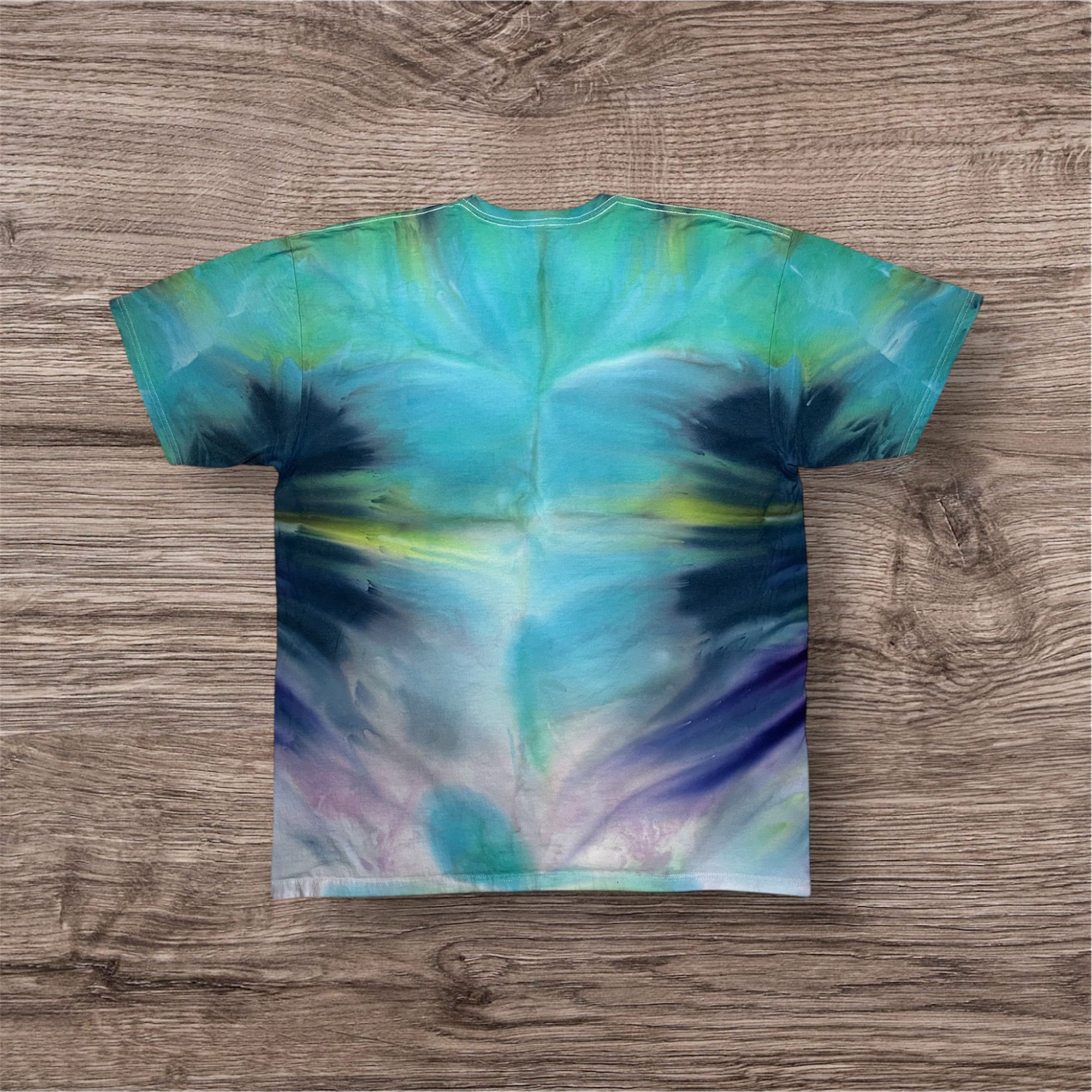 Hand tied and then hand ice dyed design on a Unisex, 100% cotton, Tultex 290 Tshirt. This one measures 27 inches pit to pit and 31 inches from top to bottom
