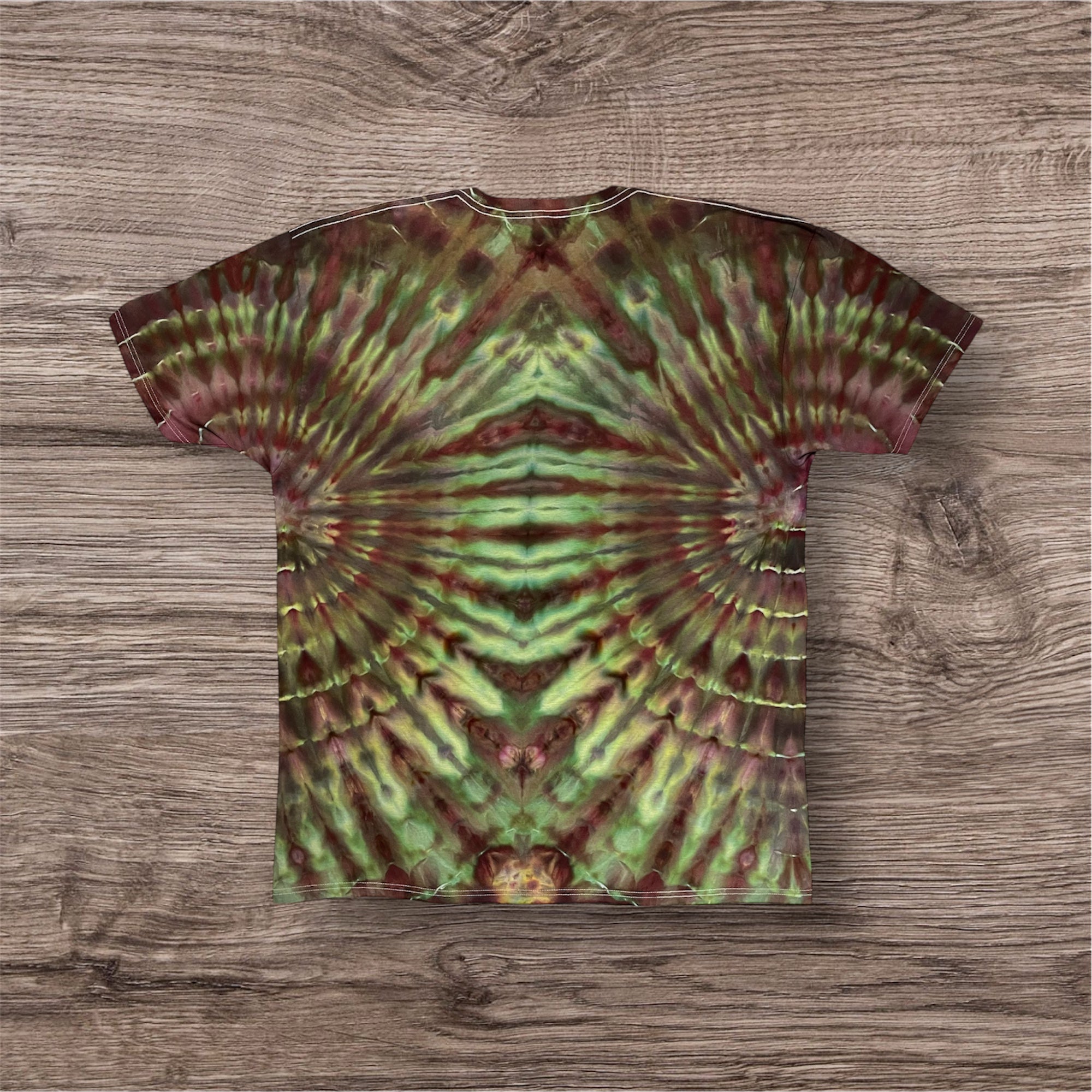 Hand tied and then hand ice dyed design on a Unisex, 100% cotton, Tultex 290  Tshirt. This one measures 27 inches pit to pit and 33 inches from top to bottom