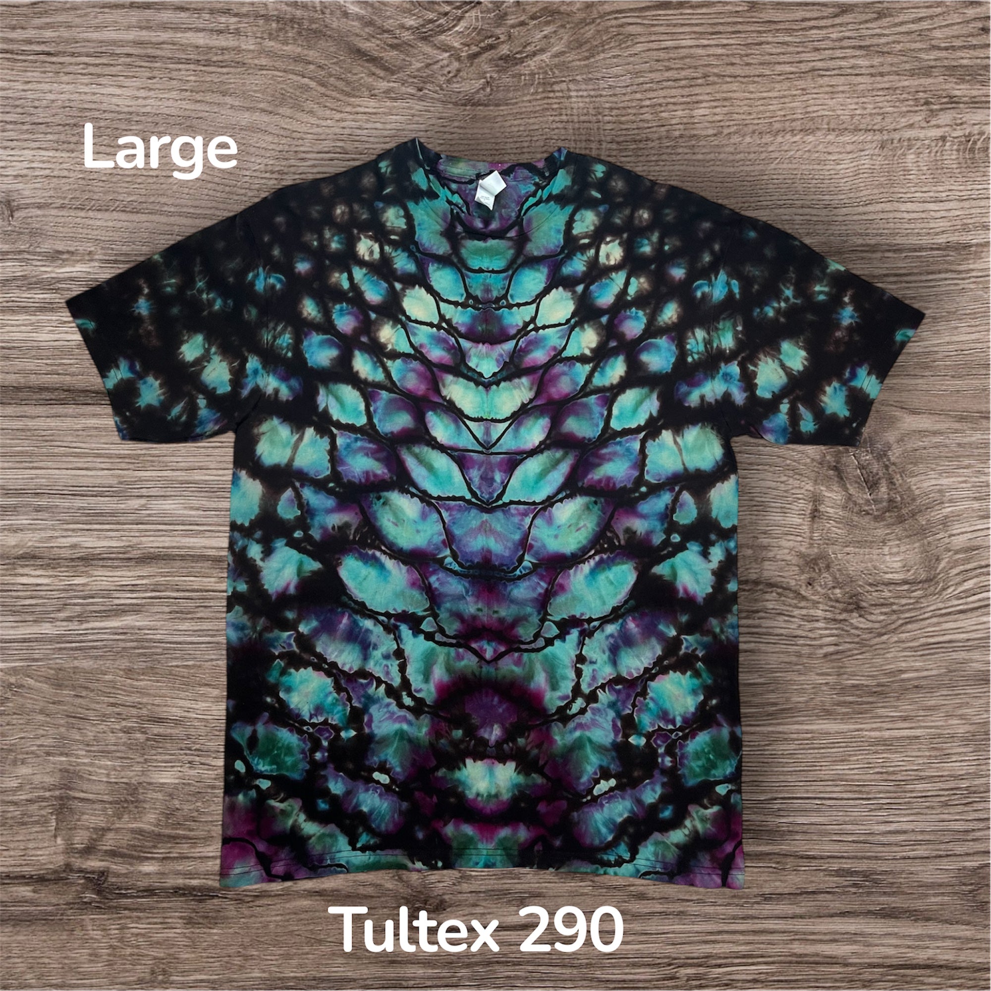 Hand tied, reverse dyed, and then hand ice dyed design on a unisex, 100% cotton, Tultex 290 Tshirt. This one measures 23 inches pit to pit and 30 inches from top of shoulder to bottom.