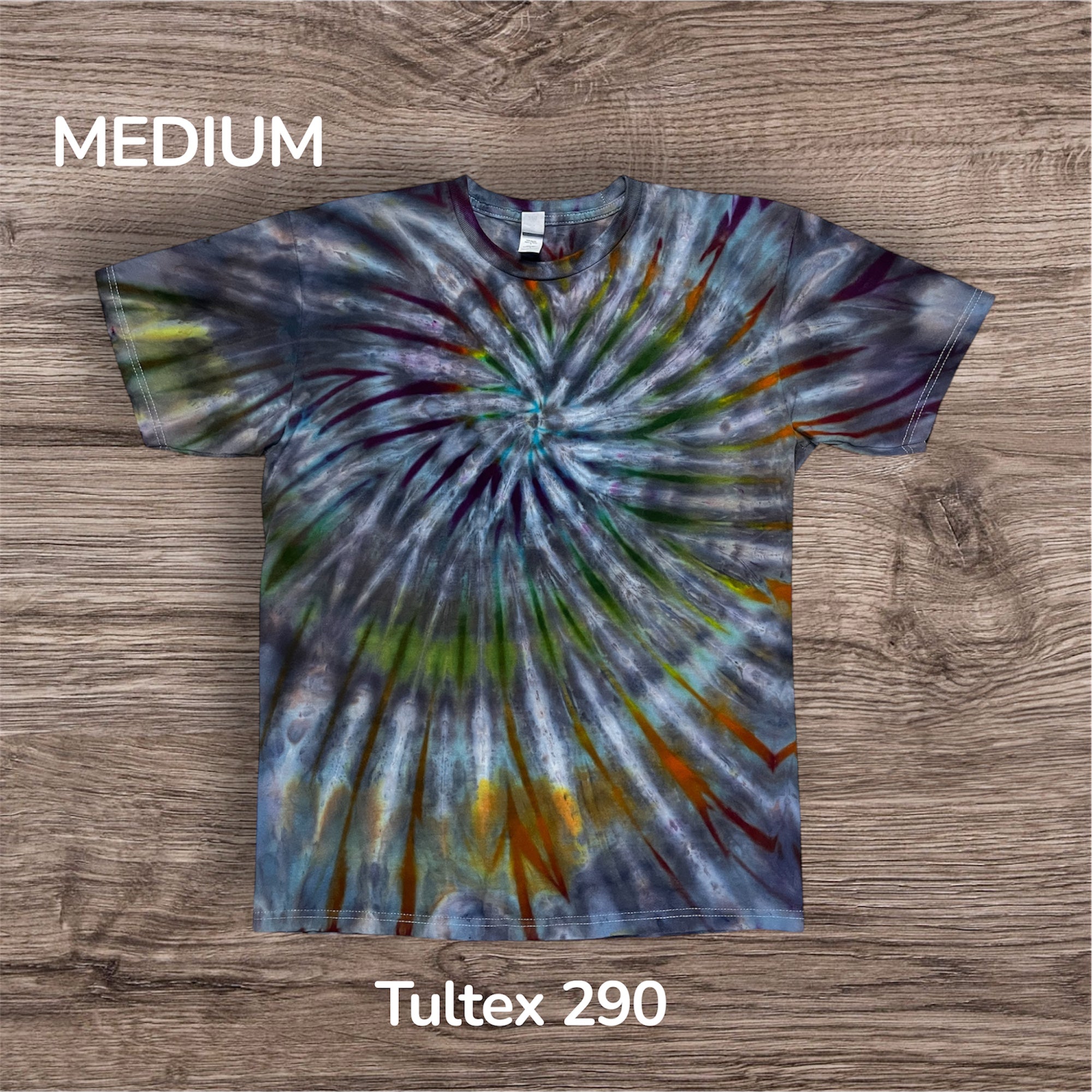 Hand tied, hand ice dyed design on a Unisex 100% cotton, Tultex 290 Tshirt. This one measures 21 inches pit to pit and 27 inches from top to bottom