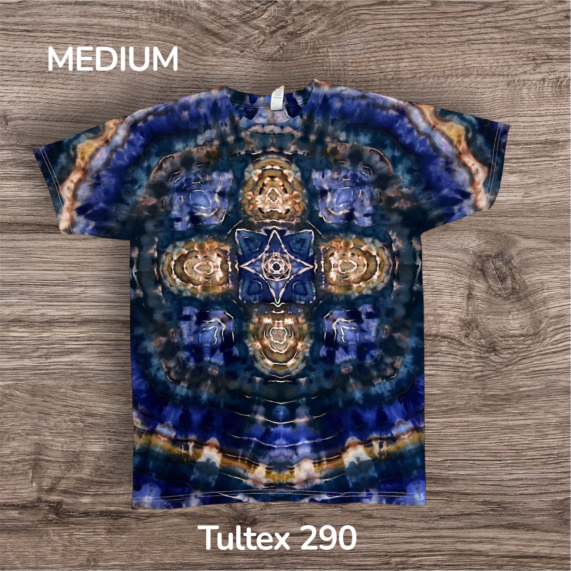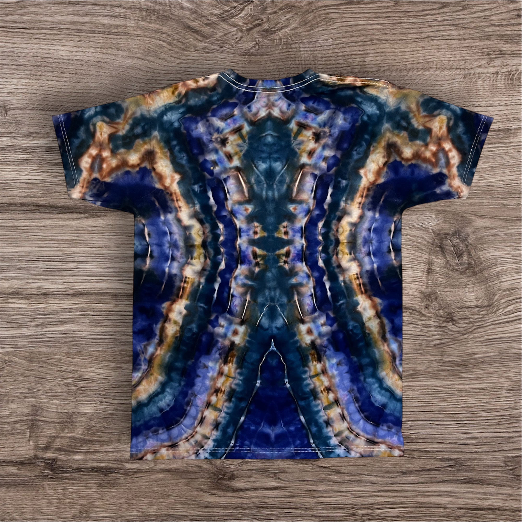 Hand tied, hand ice dyed design on a Unisex 100% cotton, Tultex 290 Tshirt. This one measures 21 inches pit to pit and 27 inches from top to bottom