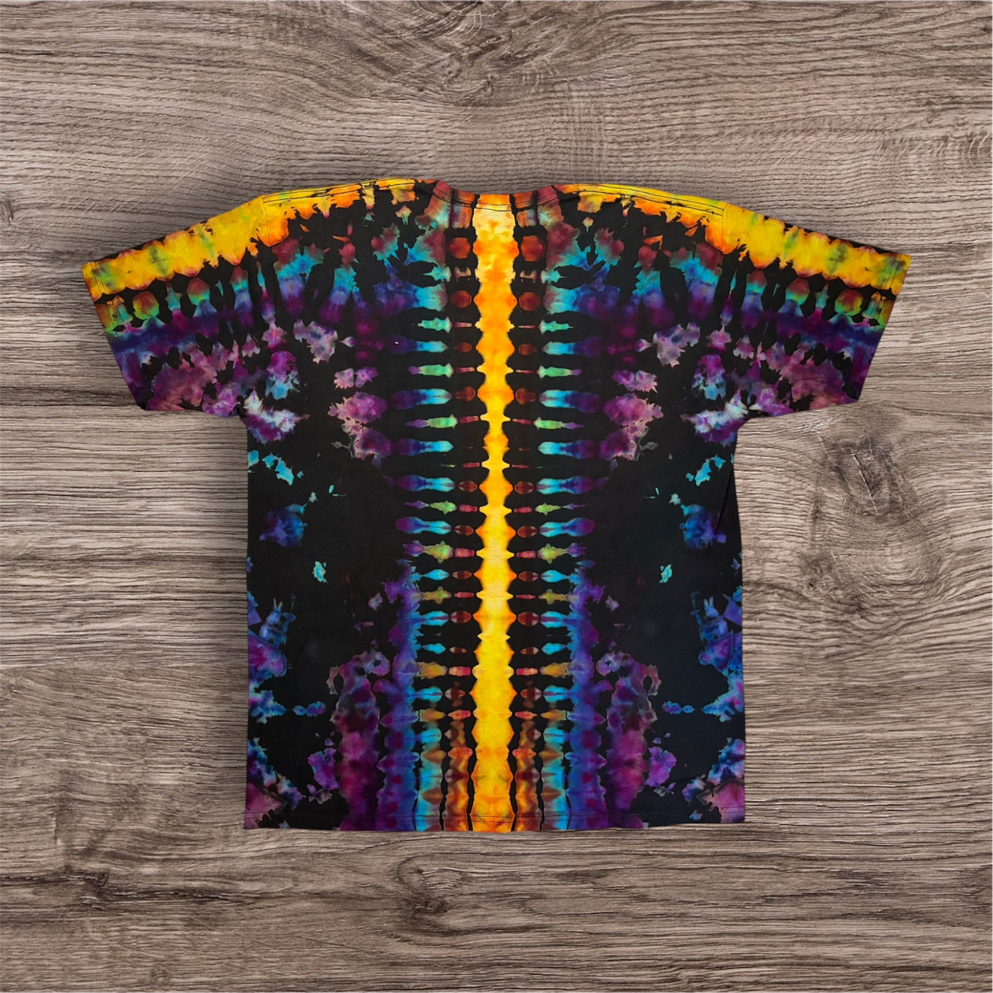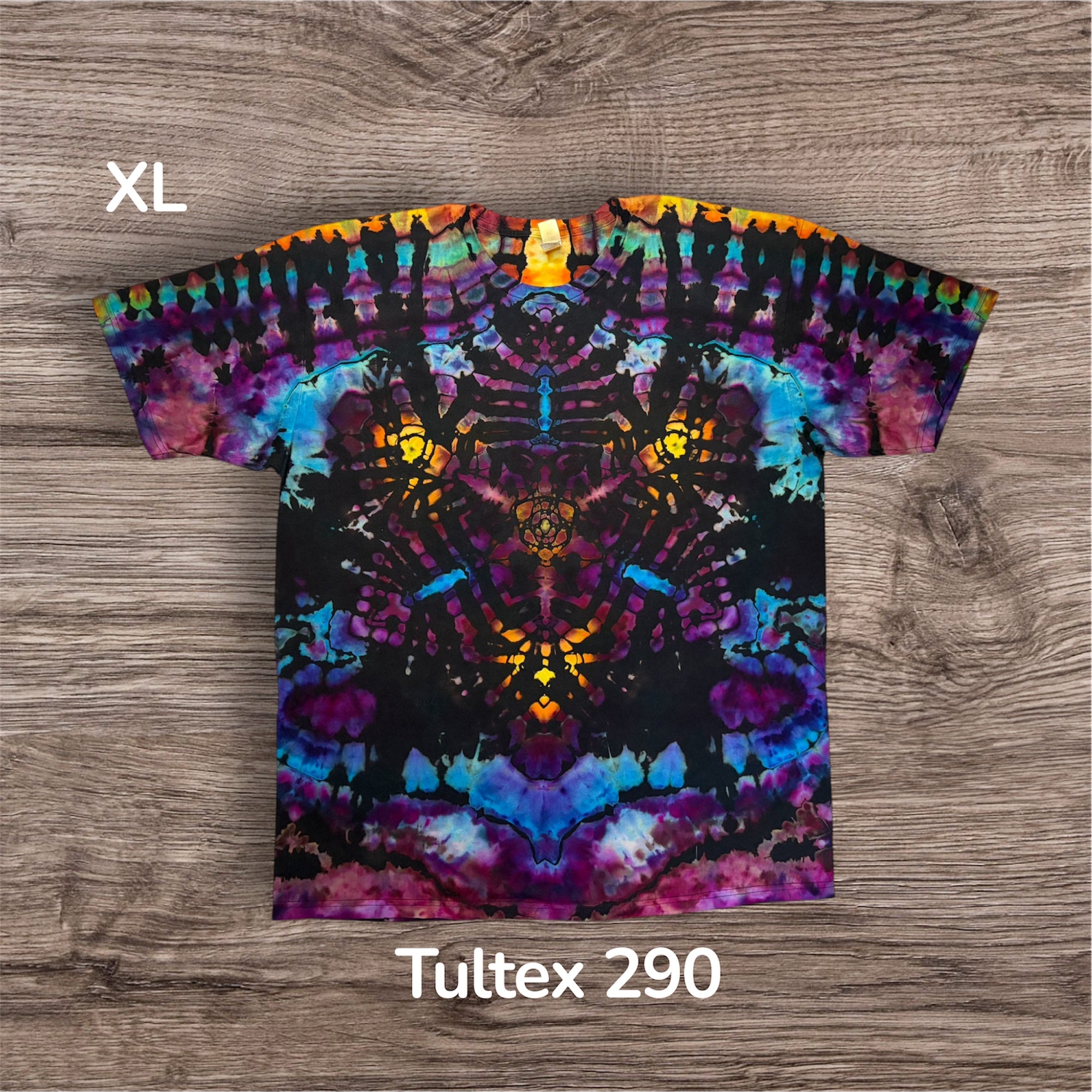 Hand tied, reverse dyed and then hand ice dyed design on a Unisex, 100% cotton, Tultex 290 Tshirt. This one measures 25 inches pit to pit and 32 inches from top to bottom
