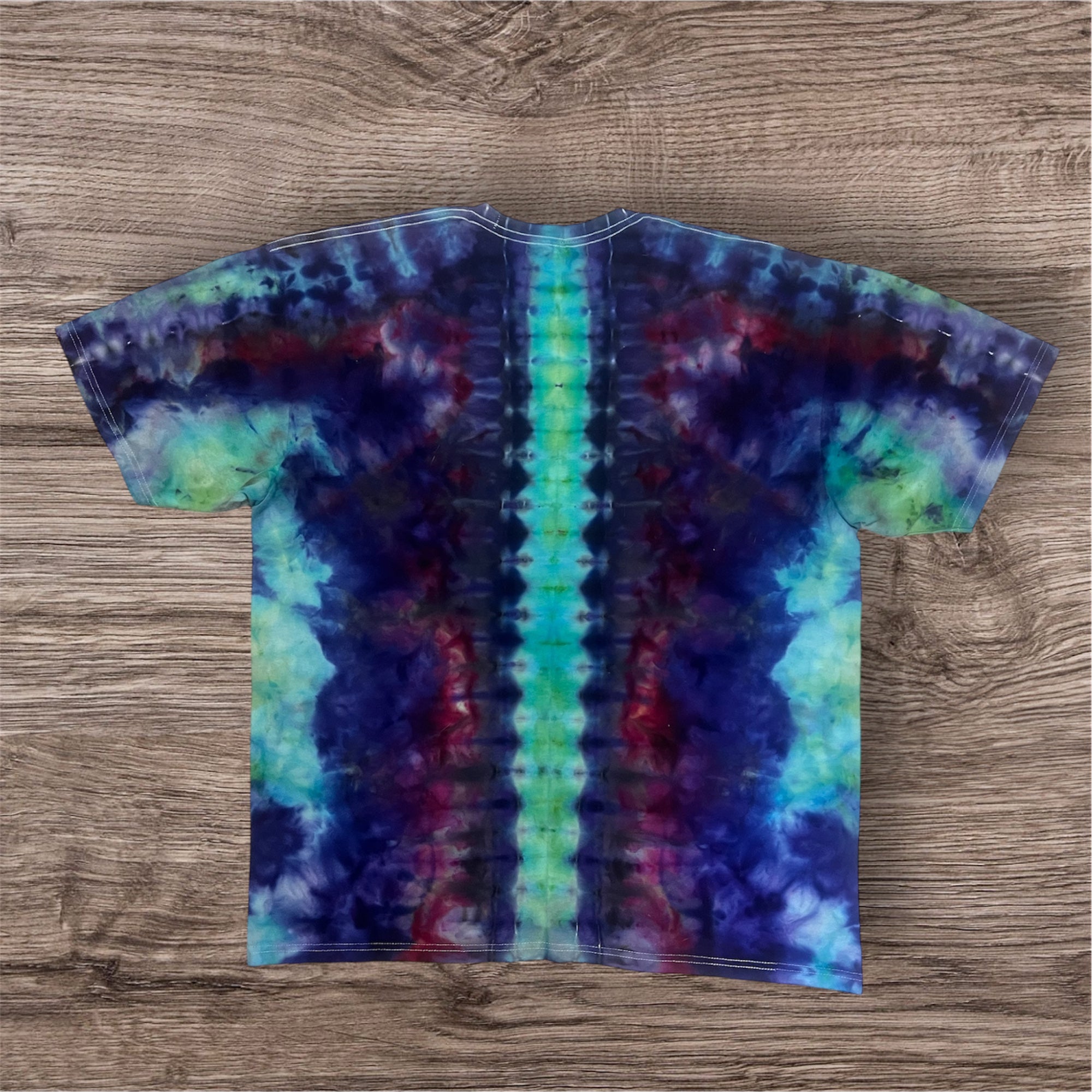 Hand tied and then hand ice dyed design on a Unisex, 100% cotton, Tultex 290 Tshirt. This one measures 25 inches pit to pit and 32 inches from top to bottom