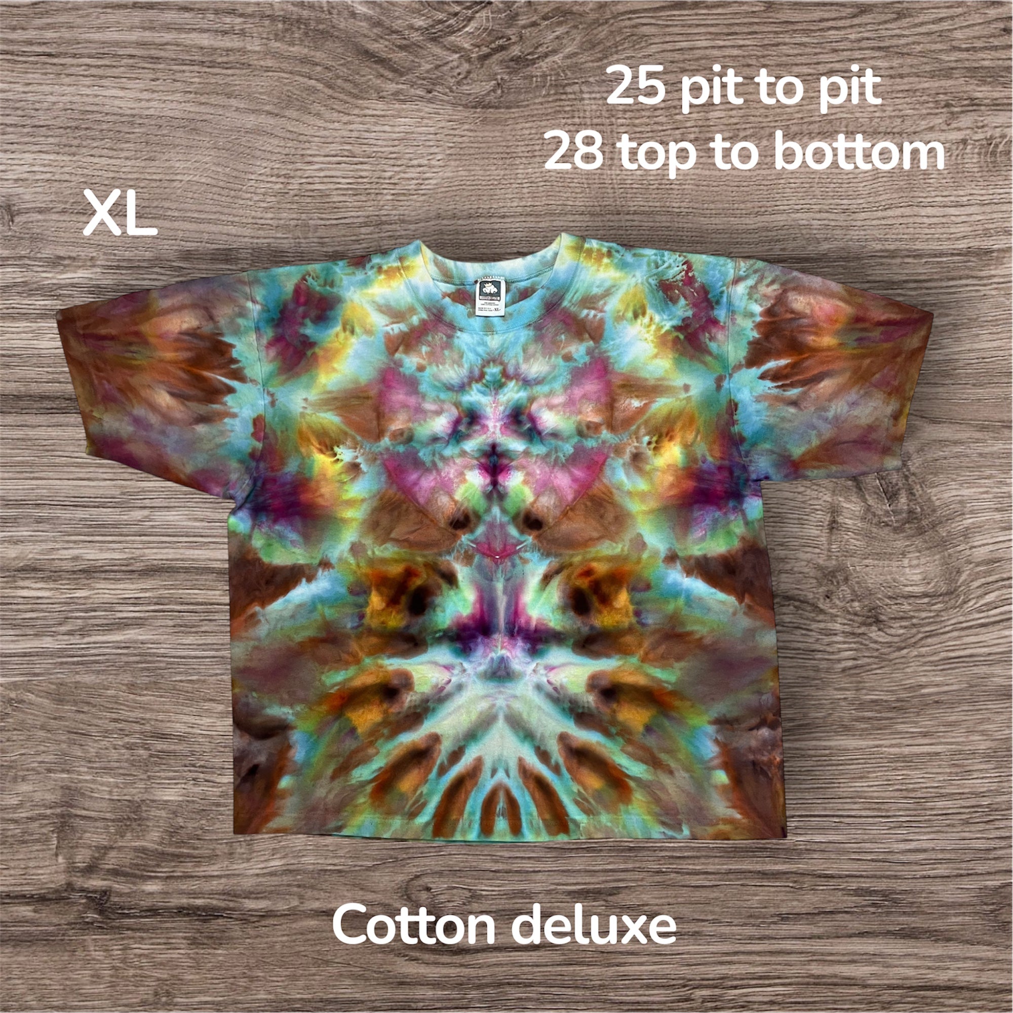 Hand tied and then hand ice dyed design on a Unisex, 100% cotton, Cotton Delixe brand Tshirt. This one measures 25 inches pit to pit and 28 inches from top to bottom